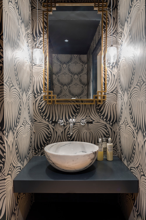 We wnętrzach w stylu Art Deco jeden wzór powtarza się na różnych elementach wystroju. Może się on pojawić na ścianie, poduszkach czy jako ornament na ramie lustra. W ten sposób udaje się stworzyć aranżację spójną i ciekawą, bez ryzyka, że powstanie zbyt krzykliwe wnętrze.